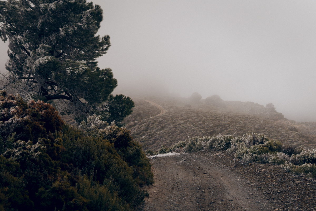 Then came the queen stage, where we climbed towards the pass in Sierras de Tejeda, Almijara y Alhama—not knowing what awaited us at the top. Despite the bright sunshine, an icy wind howled, and the pass disappeared into the clouds. The conditions at the summit were pure madness. Over 1,600 meters above sea level in January is no joke—even in the deep south! While last year we had a glorious inversion and warm temperatures here, this time we battled absurd winds. At one point, instead of riding, we were pushing our bikes, leaning against them with our full body weight—the wind was that strong. Fortunately, just a few dozen meters below the pass, the world became a much friendlier place again.